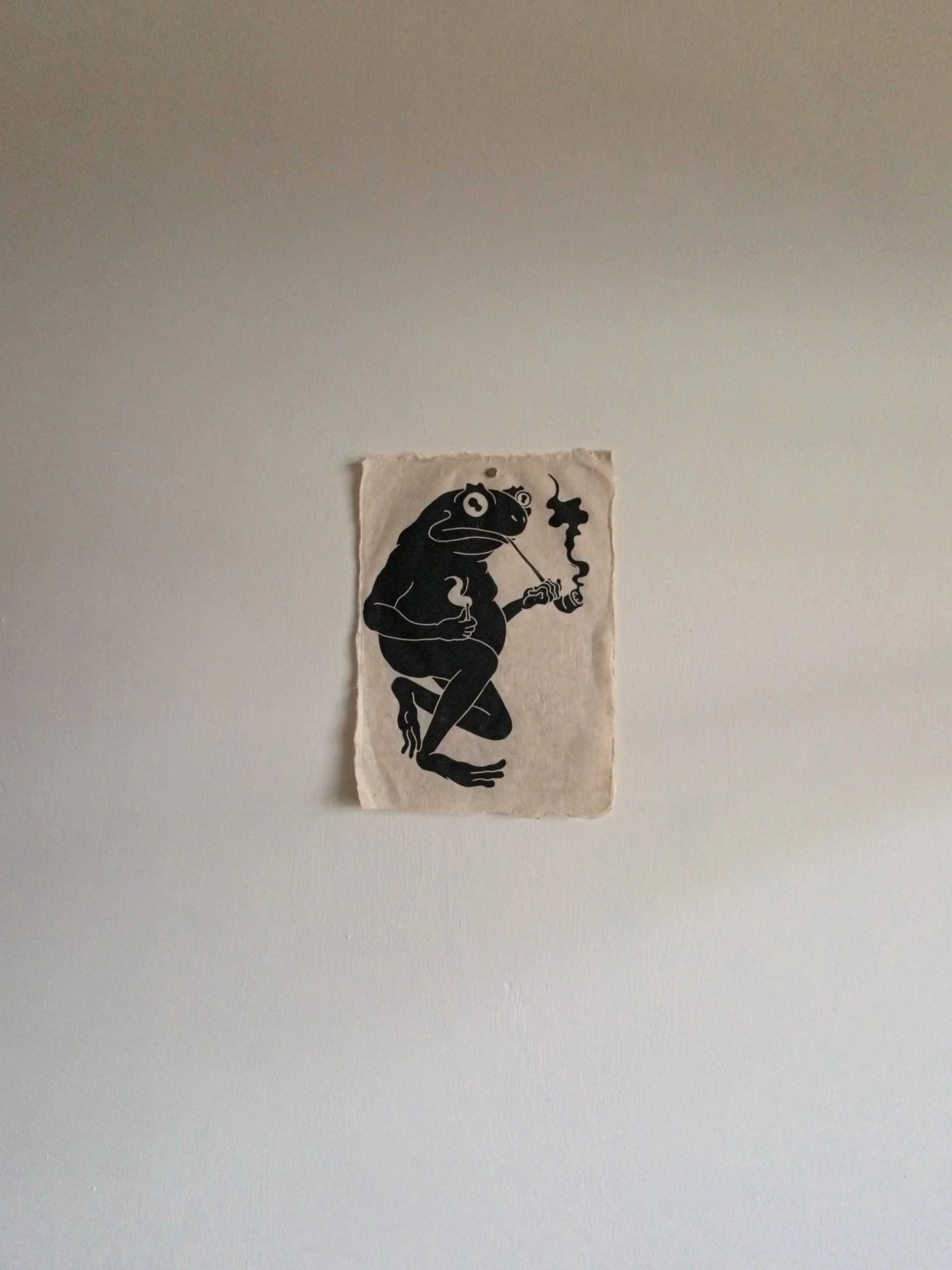Categories: All Stickers Letterpress Linocut Fonts All | Stickers | Letterpress | Linocut | Fonts | The Hanged 'Man' - Tarot-esque Lino Print £25.00 Die-Cut Vinyl Stickers £1.50 Squished up sabre-tooth tiger £5.50 Bird In Hand £20.00 Mighty Moth £16.00 Black Dogol £15.00 House Rules #1 £8.00 Podgy Pointer £10.00 Long Leaf £15.89