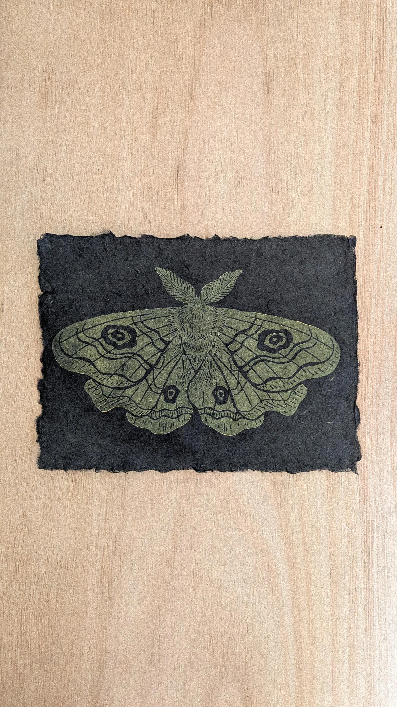 Hand-carved lino print on handmade 18gsm Lokta Paper.