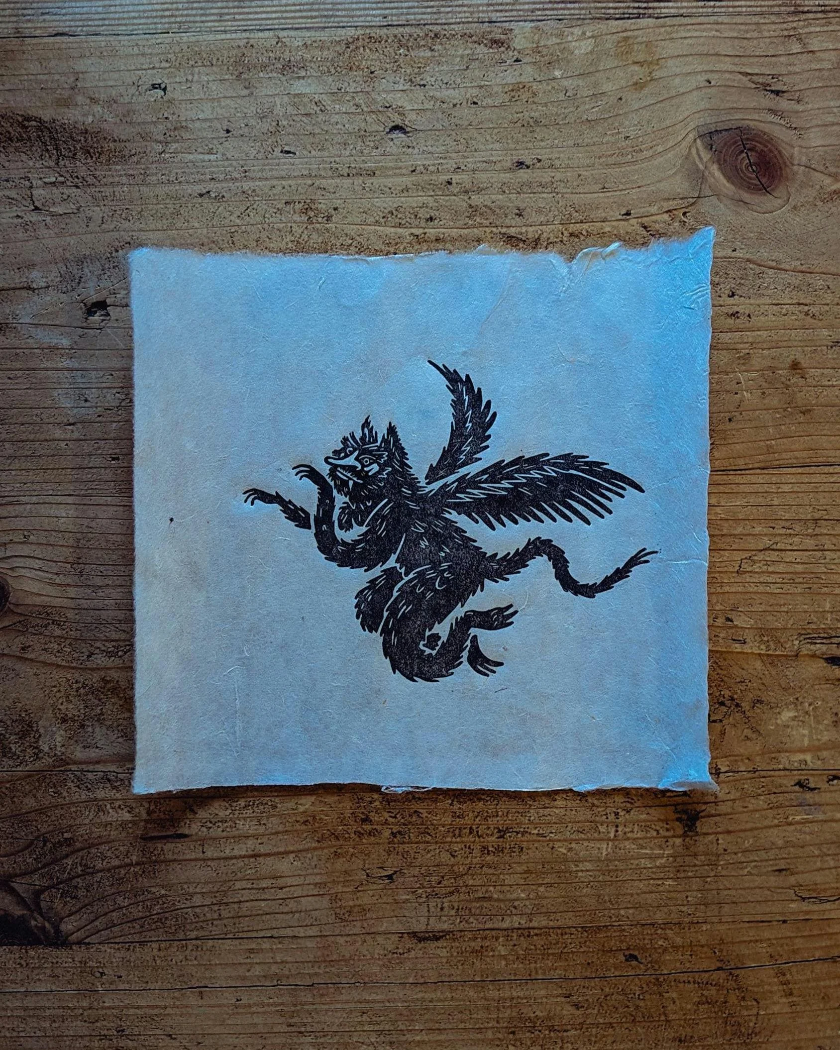 Hand-carved lino print on handmade 60gsm Lokta Paper.